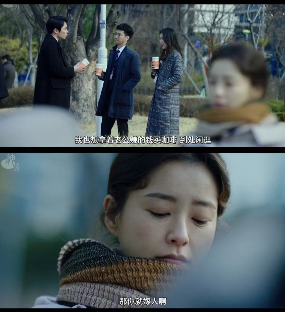 至于网上那一套自我觉醒、不婚不育、离异大女主的说法更像是一到隔着玻璃的风景,好看,却与自己无关。我有时候也能理解,对于一些女性而言,相比于在职场上挣一份朝不保夕的收入,不如务实地踏入婚姻来对抗生活的不确定性。