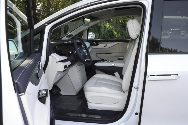空间是 MPV 的核心,这台车的表现没让我失望。车身尺寸是 5219mm×1878mm×1807mm,轴距 3088mm,看着挺大,但实际开起来、停起来并没那么费劲。我身高 180cm,调整好前排座椅后,头部和腿部各有一拳左右的余量,不会觉得挤得慌,座椅的支撑性也不错,开长途的时候腰部不会太酸,前排座椅调节按钮在门板上方,操作起来很方便。